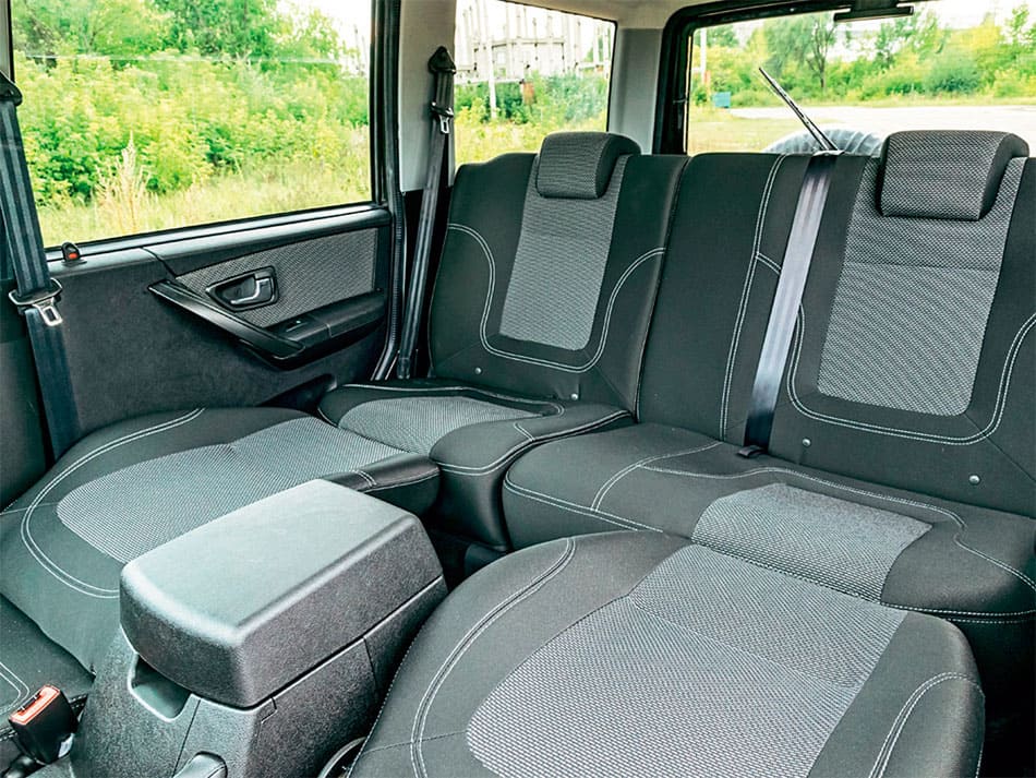 водителя. - Задние сиденья с подлокотником. Обивка комбинированная, темная (боковины иск.кож., центральные вставки на подушке